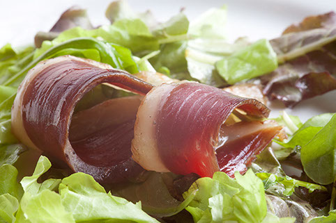 Lo speck d'oca, è un prodotto tipico di alta qualità ottenuto dal petto fresco d’oca.